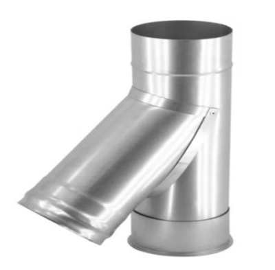 Предназначен для изменения направления дымового канала, используется в местах присоединения теплогенерирующего аппарата к основному каналу. Выполняет функцию очистного приспособления, облегчает обслуживание дымохода либо воздуховода