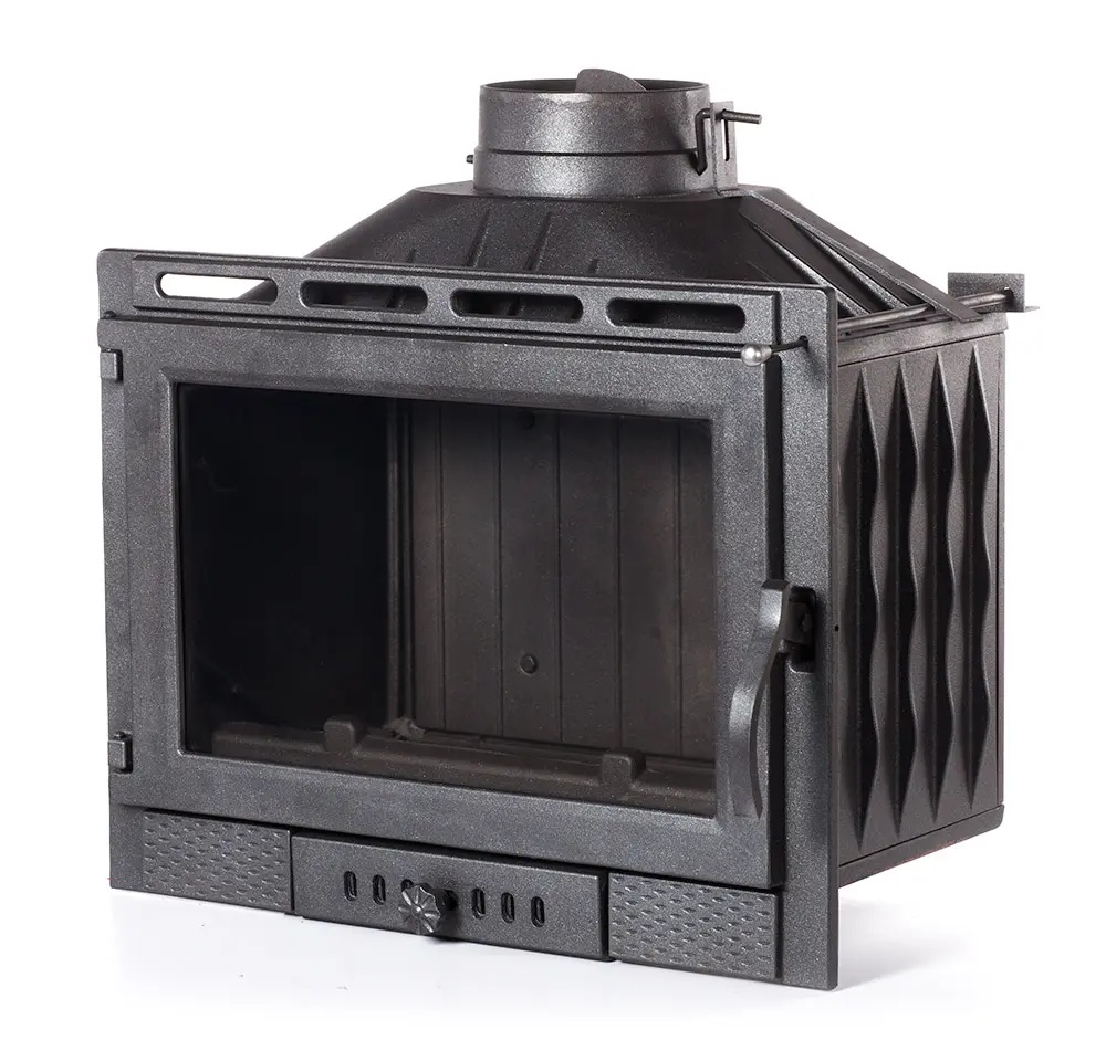 Каминная топка Дагмар от известной российской компании «FireWay» изготовлена из высококачественного чугуна и соответствует современным требованиям отечественных и европейских стандартов качества и безопасности. Модель характеризуется высокими показателями коэффициента полезного действия (75%) и тепловой мощности (10 кВт), что позволяет прибору в сжатый период времени прогреть воздух в помещении площадью до 100 кв.м. (при стандартной высоте 2,5м). Рекомендуемое топливо – дрова с допустимым процентом влажности 20%, возможно использовать древесные брикеты.