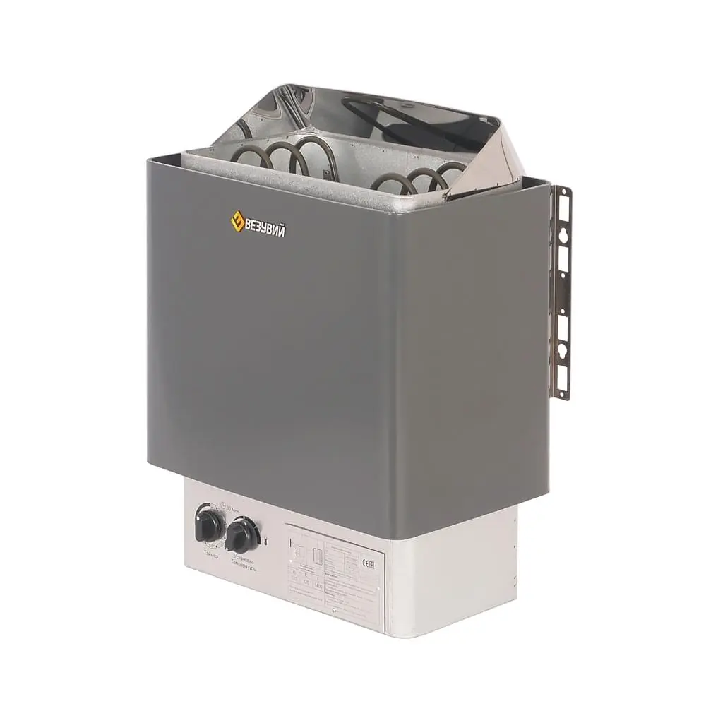 Печь для бани на электричестве, навесная электрокаменка Везувий MODERN-30, напряжение сети 380V, мощность 3 кВт, отапливаемый объем парной от 3 до 4,5 м3.