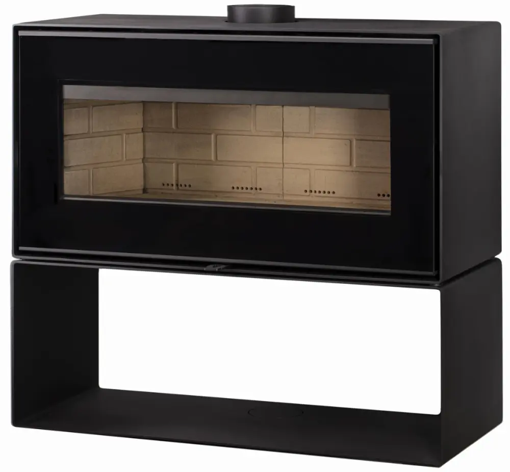 Печь-камин “Монблан” представляет собой объемную топку, защищенную металлическим кожухом. Изнутри она футерована вермикулитовыми пластинами, оформленными под кирпичную кладку. Топка вмещает поленья рекордной длины - до 80 см. Несмотря на солидные размеры и высокую мощность в 10 кВт, печь абсолютно безопасна в эксплуатации.